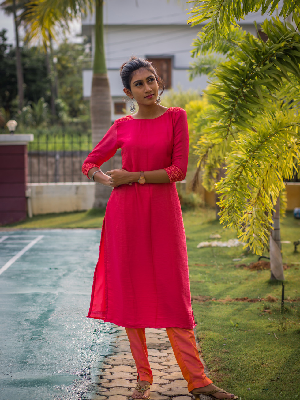 Kurta Color: Rich Fuchsia Pink with Textured Beaded Accents